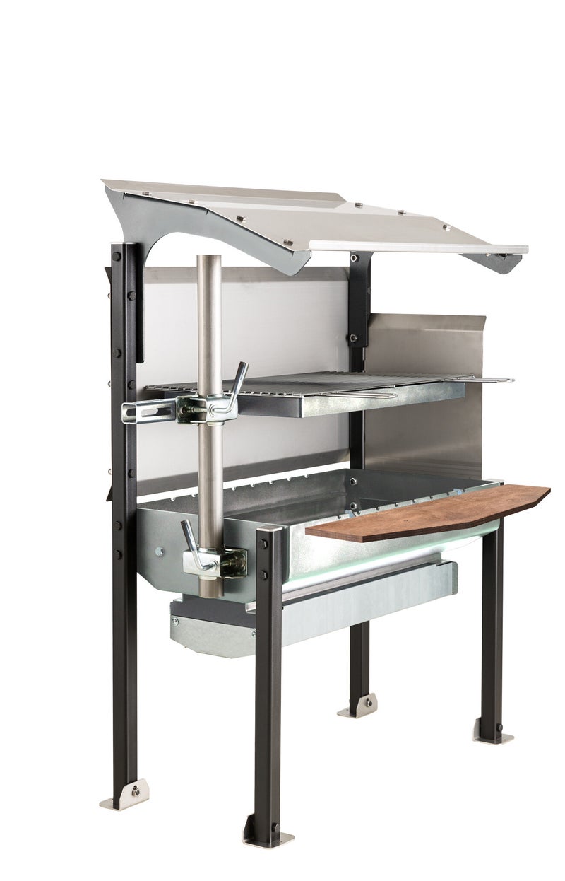 Tarkoin mitoitettu katos ohjaa savun hallitusti pois ja toimii sateensuojana - grillaus onnistuu säässä kuin säässä.